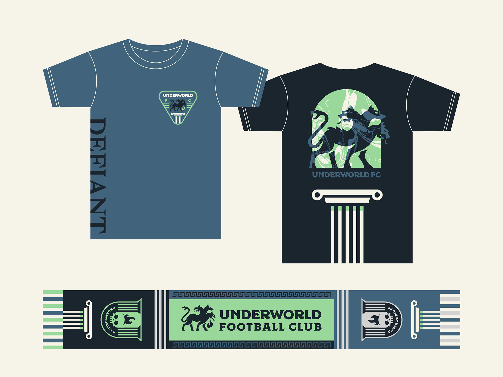Every element of this creative endeavor was meticulously crafted to breathe life into these teams. From vibrant illustrations that showcase dynamic mythological mascots, to distinctive logos that embody the spirit of each squad, the Fiction Football League is a celebration of creativity and detail. Supporting brand elements—jersey designs, team crests, and stadium graphics—add depth to the league’s universe, creating a vivid and cohesive narrative. The Fiction Football League invites viewers to imagine a world where myth and sport collide in epic fashion.